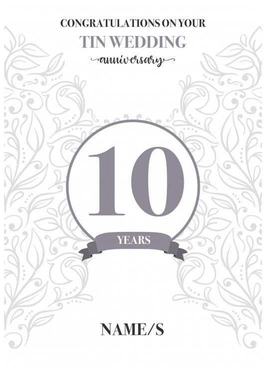 Doodle Hearts 10th Wedding Anniversary Card for Couples