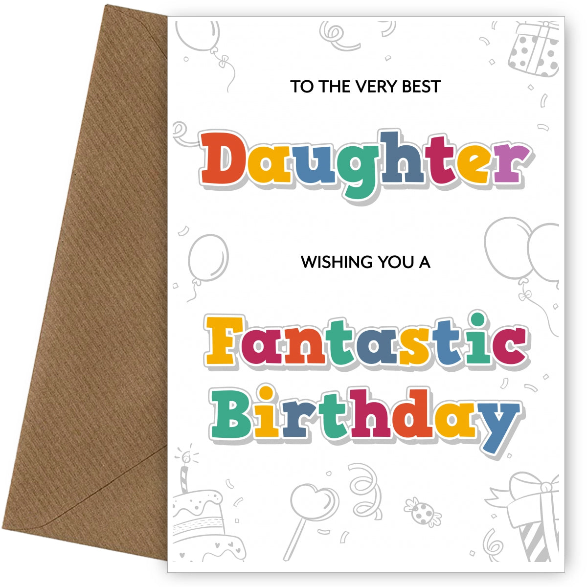 Our fun daughter birthday cards for adults and kids are colourful and friendly. Specially designed for girls with the following text on the front:
