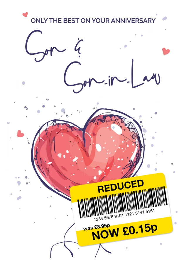 Celebrate their love story with this heartfelt and funny anniversary card for Son and Son-in-Law. Whether it’s their 1st year or their 70th, this elegant design with a bold red heart is perfect for marking the journey.
