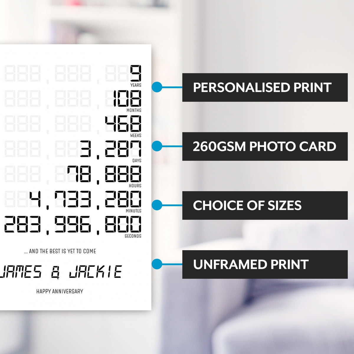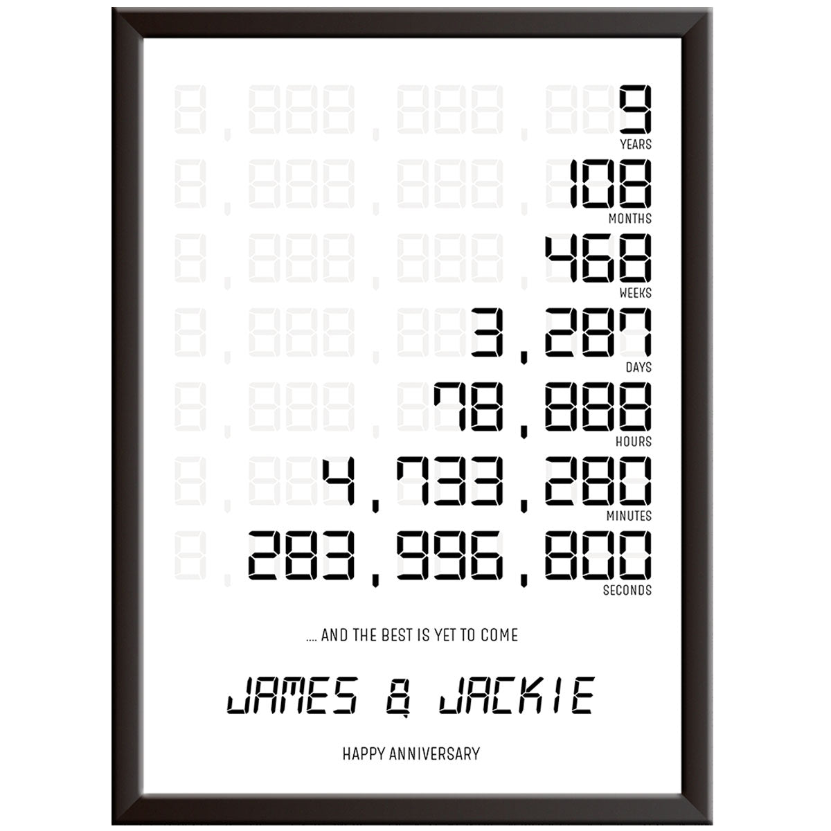 If you're looking for a unique wedding anniversary gift then this could be what you need. This stunning personalised print shows the length of time in number from years to seconds.
