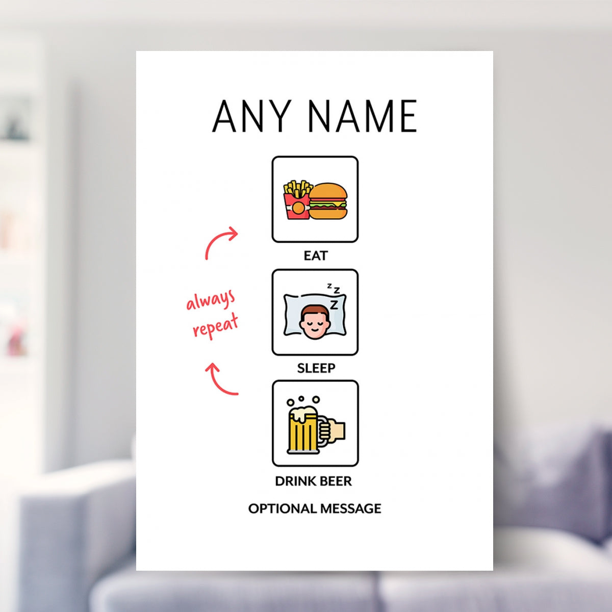 This fun beer poster will look amazing hung in a bedroom, man cave or as a bedroom accessory. This can be given as a gift to your son / grandson / uncle or even a dad.