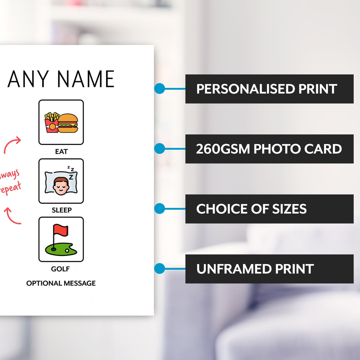 This fun golf poster will look amazing hung in a boys bedroom, girls room or as a boys bedroom accessory. This can be given as a gift to your son / daughter / brother / sister or even to a golfer.
