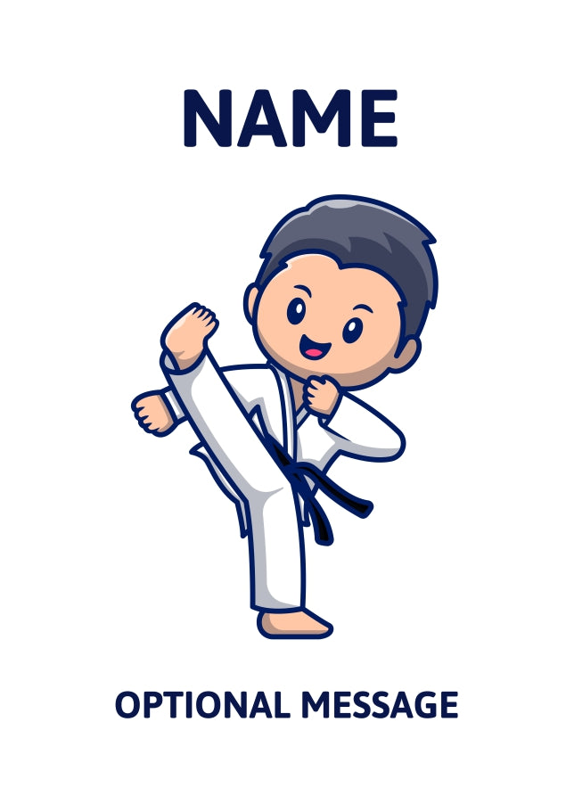 A fun and bold greetings card with Karate Kid on the front. It can be used for almost any occasion including kids birthday, father's day, Christmas and more.
