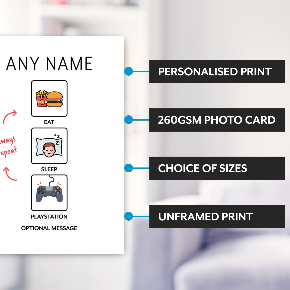 This fun gaming poster will look amazing hung in a boys bedroom, girls room or as a boys bedroom accessory. This can be given as a gift to your son / daughter / brother / sister or even to a playstation addict.