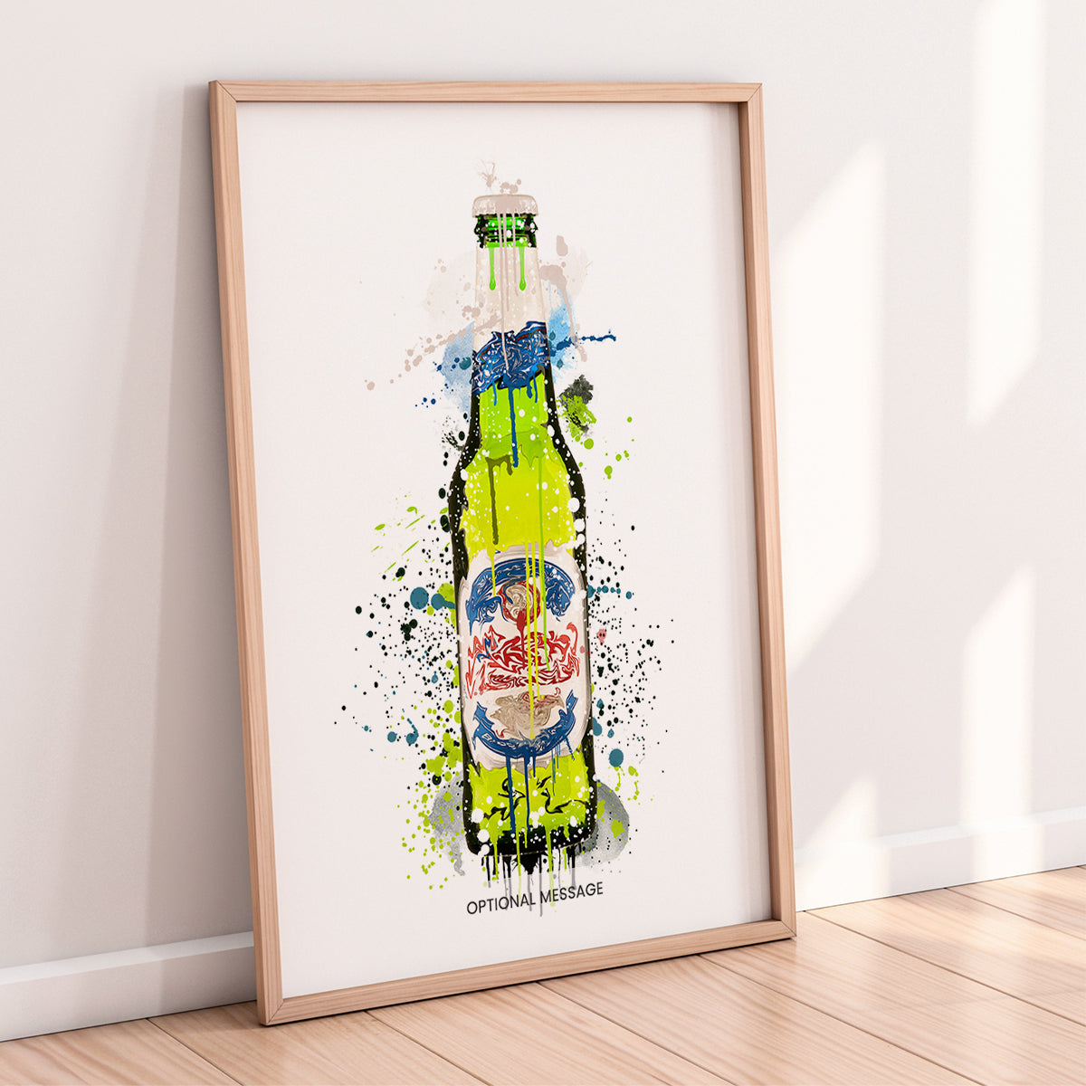Add relaxed home bar character to your space with this green beer bottle watercolour wall art, designed to bring colour and personality to dining rooms and kitchens.