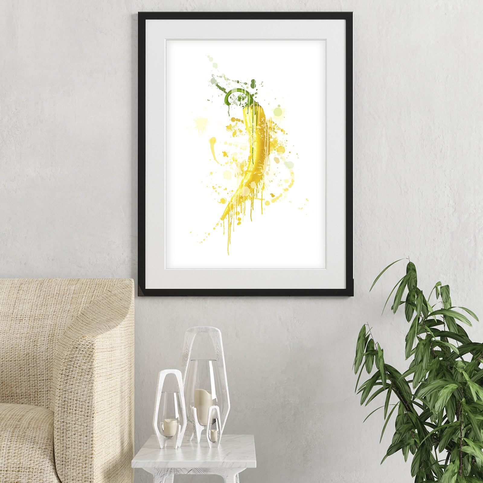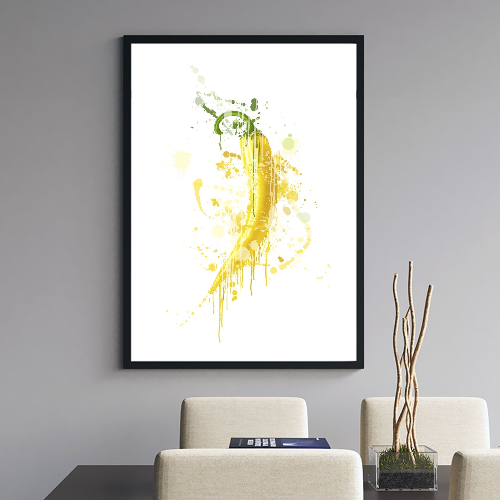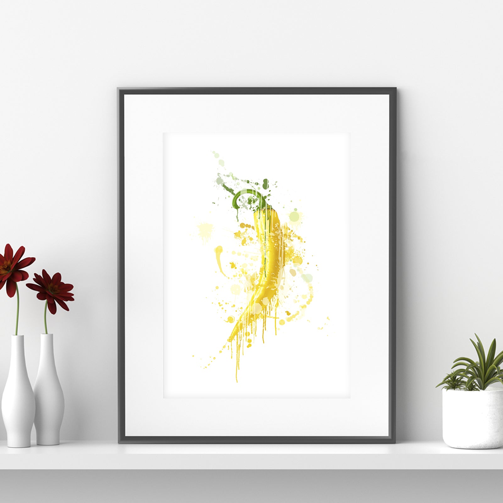 Our eye-catching Yellow Chilli Pepper print is enough to add a little heat in any kitchen or dining room. This design will look stunning on a wall in your home or make a special and unique gift. Matching green and red chilli pepper prints also available.