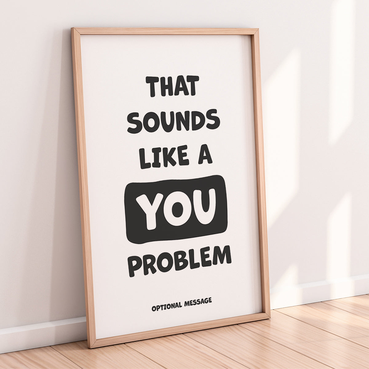 A blunt and funny wall art print that proudly declares: That sounds like a you problem.