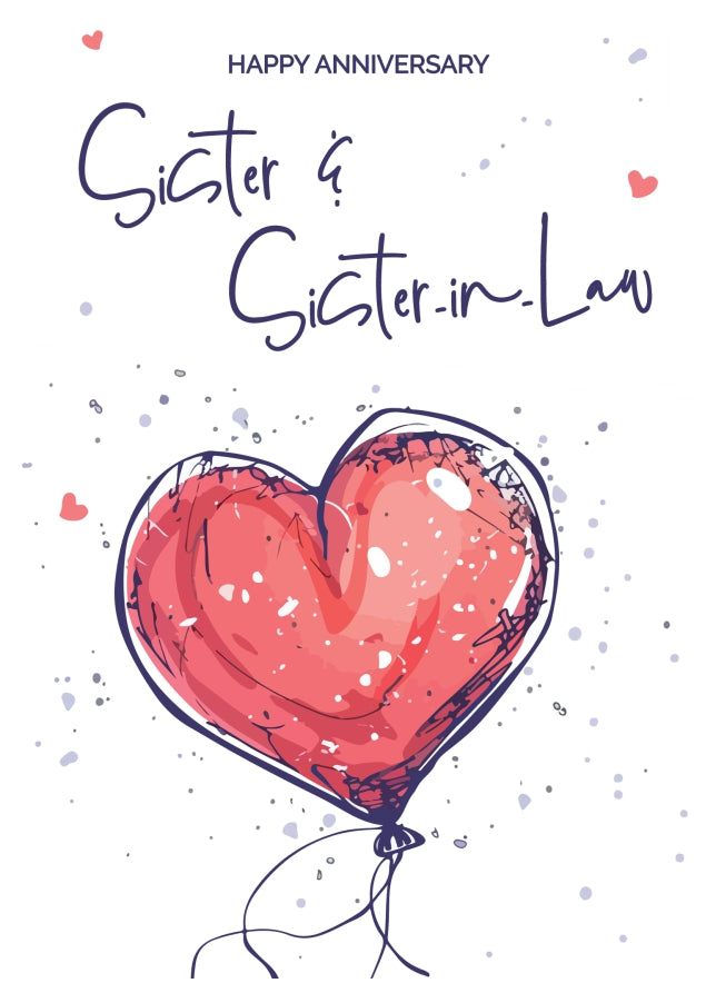 Celebrate a momentous occasion with our sister and sister-in-law anniversary card, showcasing an enchanting red heart-shaped balloon that captures the essence of true love.