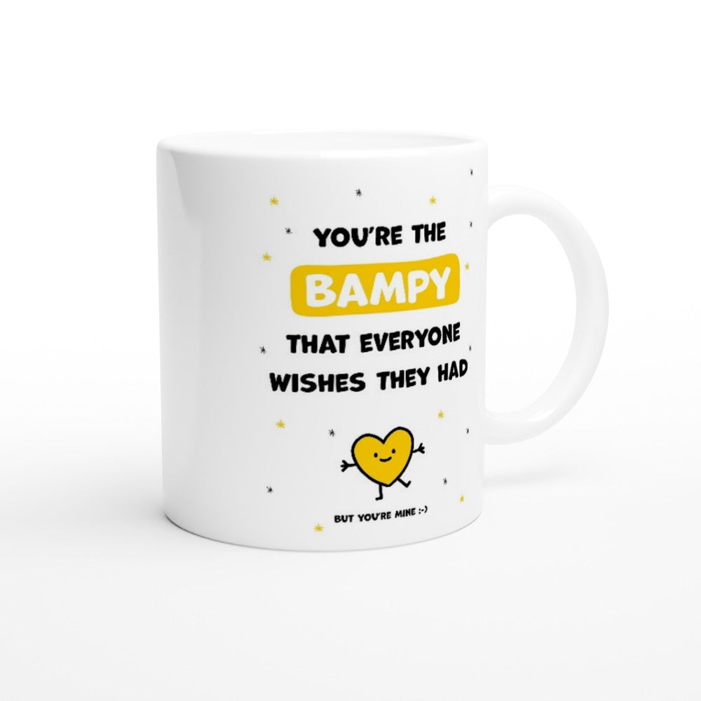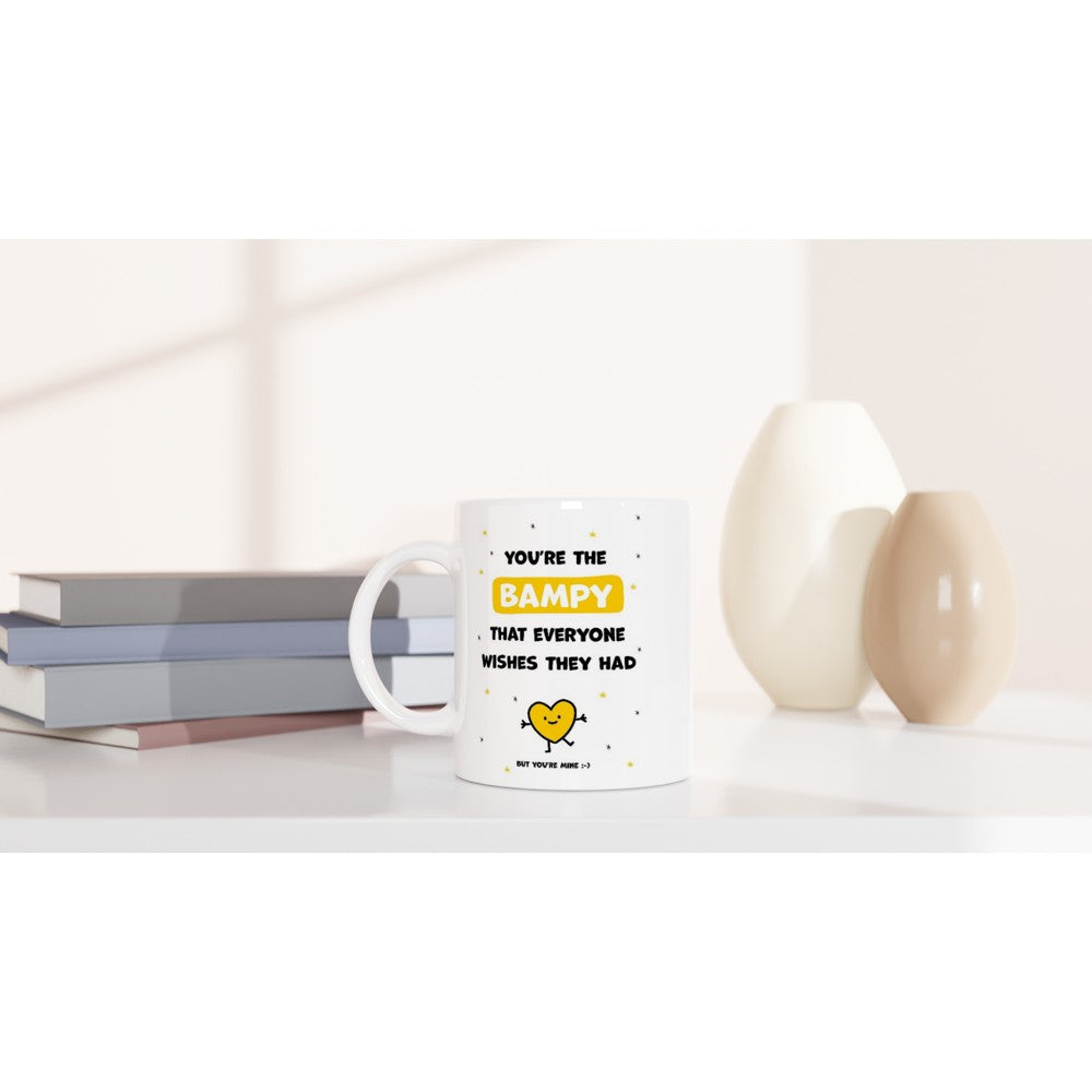 This beautiful ceramic mug for bampy is perfect for any event of the day. Your morning coffee, a hot chocolate, or any other hot beverage you enjoy. The mug is glossy white and the prints come out beautifully and vividly on it. The print retains its quality and luster when used in both microwaves and the dishwasher.