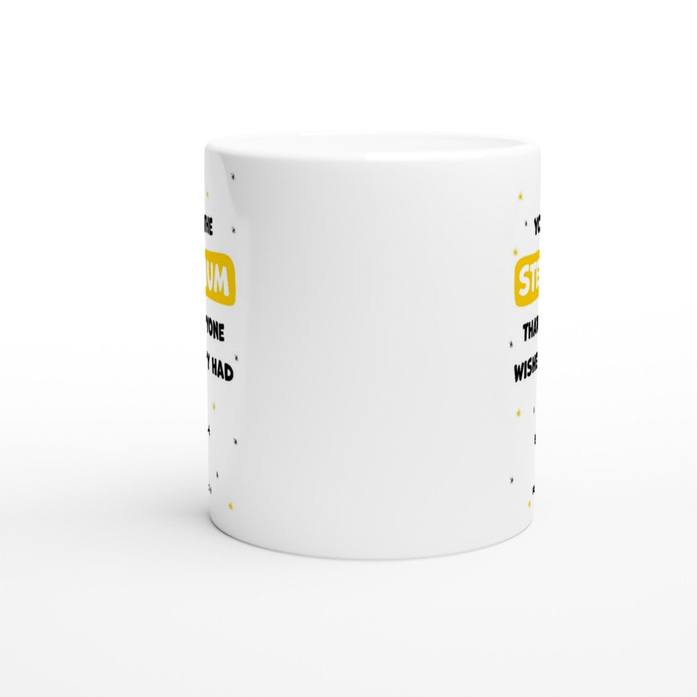 This beautiful ceramic mug for Step Mum is perfect for any event of the day. Your morning coffee, a hot chocolate, or any other hot beverage you enjoy. The mug is glossy white and the prints come out beautifully and vividly on it. The print retains its quality and luster when used in both microwaves and the dishwasher.