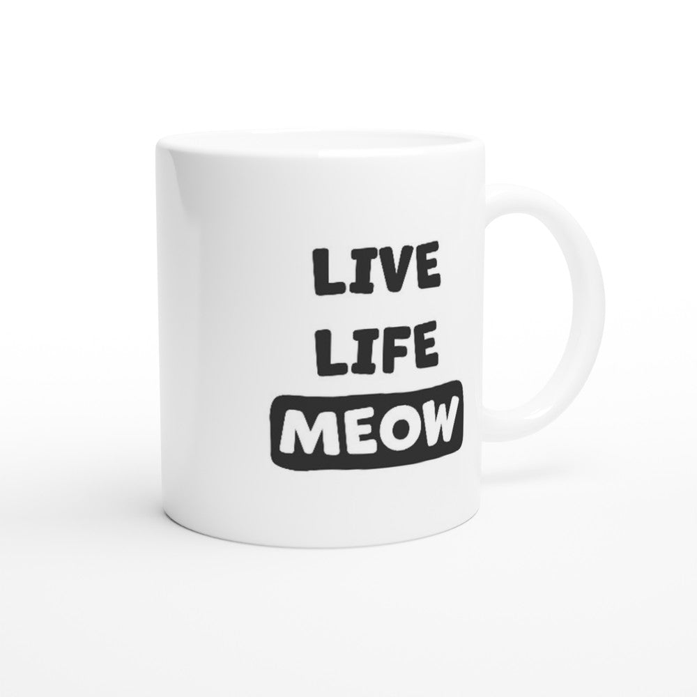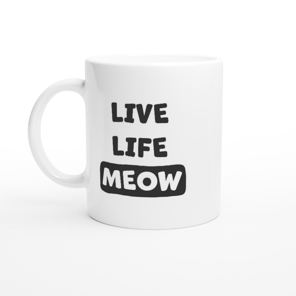 Give the special people in your life a reason to smile with the "Live Life Meow" coffee mug—a perfect blend of humour and practicality. This glossy white ceramic mug is more than just a container; it's a thoughtful gift that sparks laughter and joy every morning.