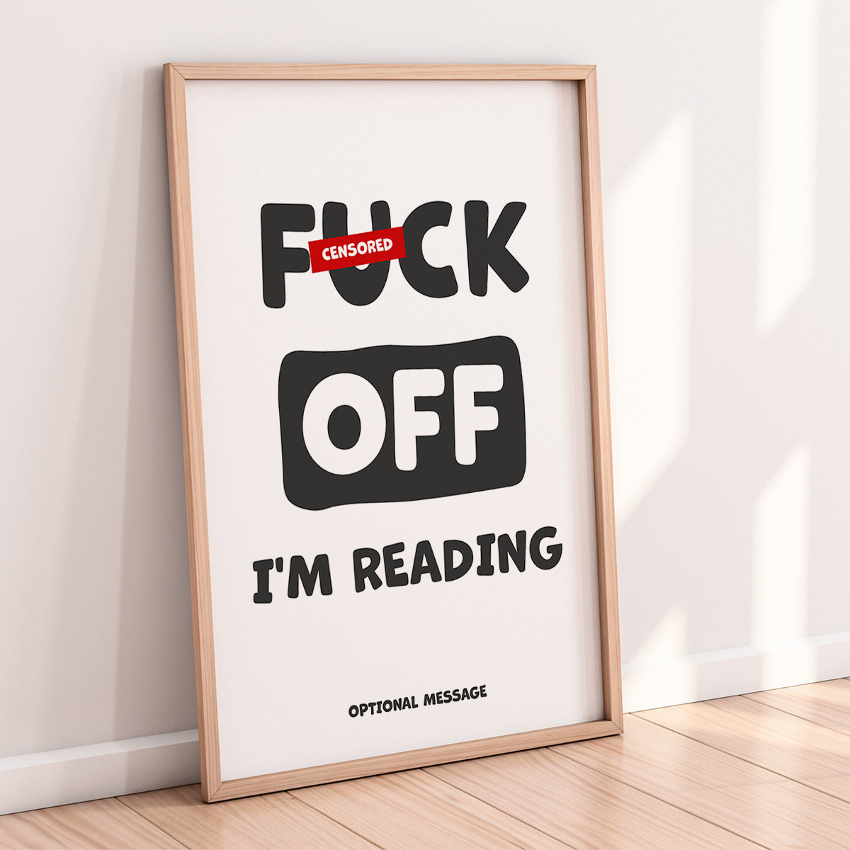 A bold, cheeky and relatable quote print designed for anyone who loves peace, quiet and a good book. Featuring the phrase F*ck off I'm reading, this humorous wall art makes a hilarious talking point and a perfect gift for book lovers.