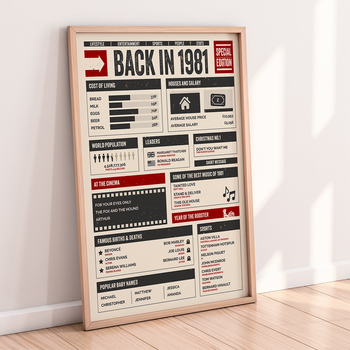 This vintage-inspired design stands out, inviting both men and women to reminisce about the year they were born, 1981. Decorate your home with this unique art print, which acts as a stunning centrepiece and conversation starter.