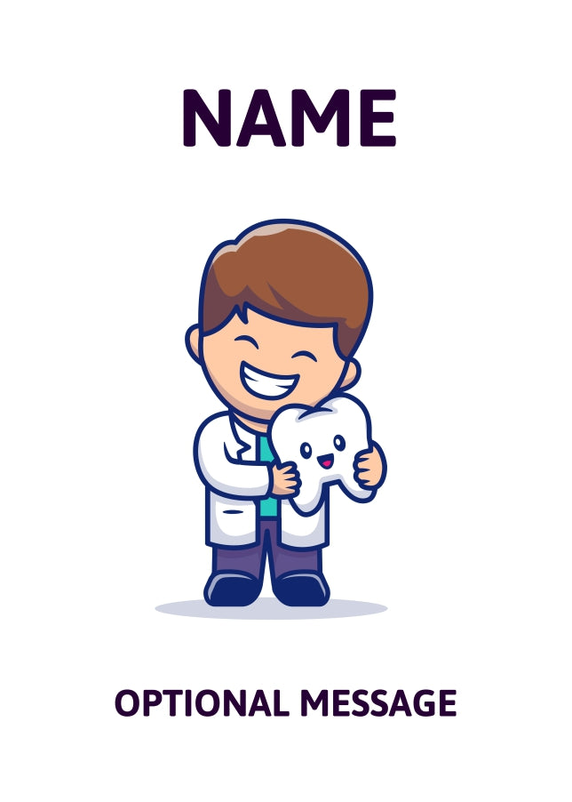 A fun and bold greetings card with a Dentist on the front. It can be used for almost any occasion including adults / kids birthday, father's day, Christmas and more.