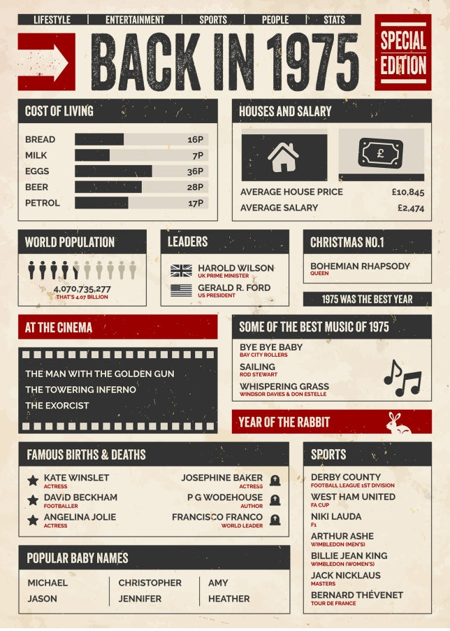 Looking for the perfect gift to celebrate a special 30th birthday? Our 'Back in 1975' card is just what you need!