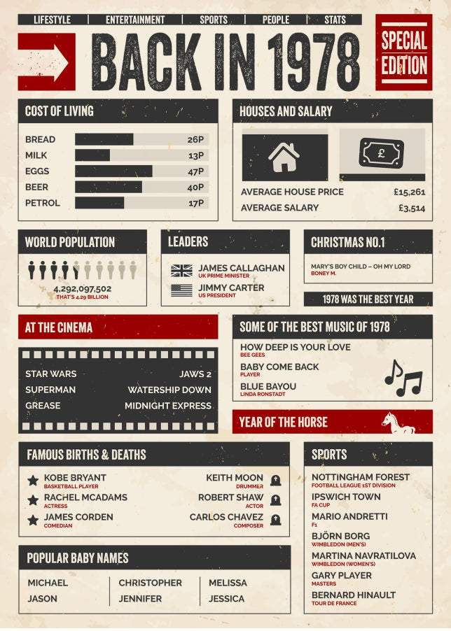 Looking for the perfect gift to celebrate a special 30th birthday? Our 'Back in 1978' card is just what you need!