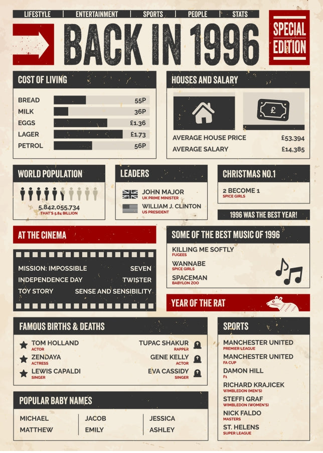 Looking for the perfect gift to celebrate a special 30th birthday? Our 'Back in 1996' card is just what you need!