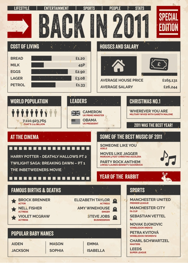 Looking for the perfect gift to celebrate a special 30th birthday? Our 'Back in 2011' card is just what you need!