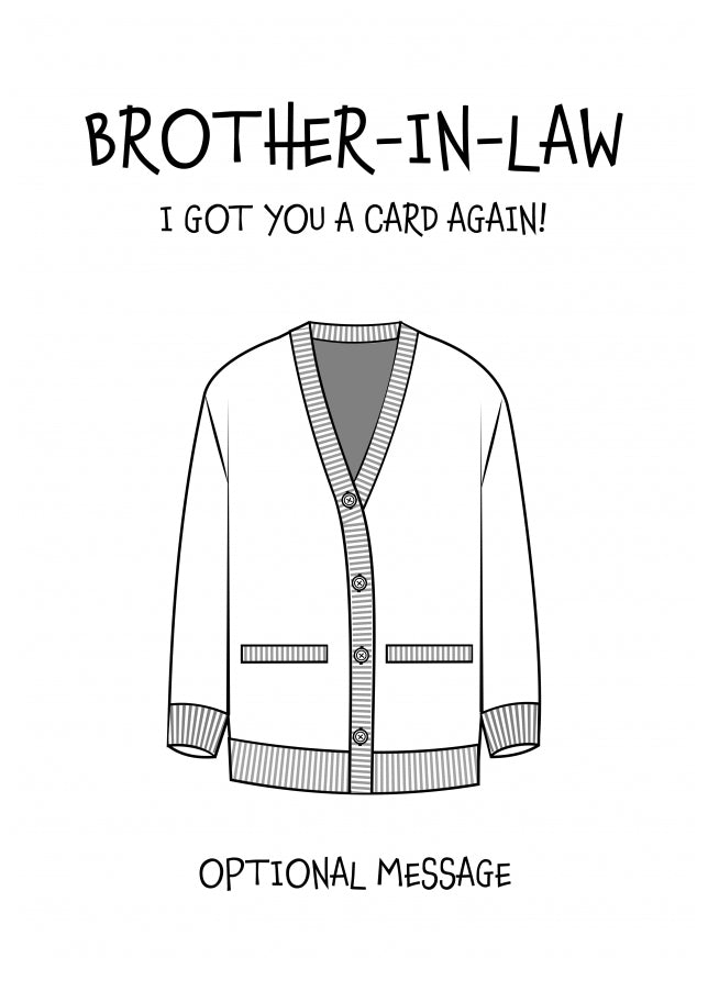 This cute Birthday card for Brother-in-law has been designed with a minimal picture of a cardigan on the front and the following wording: