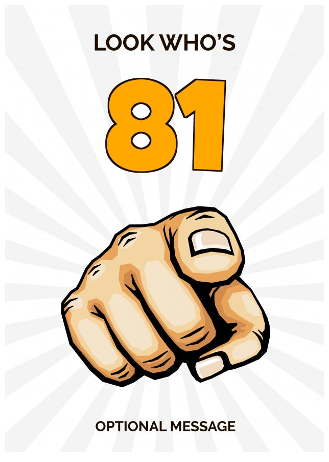 This fun 81st birthday card for an adult has been designed with a large finger pointing at the recipient.