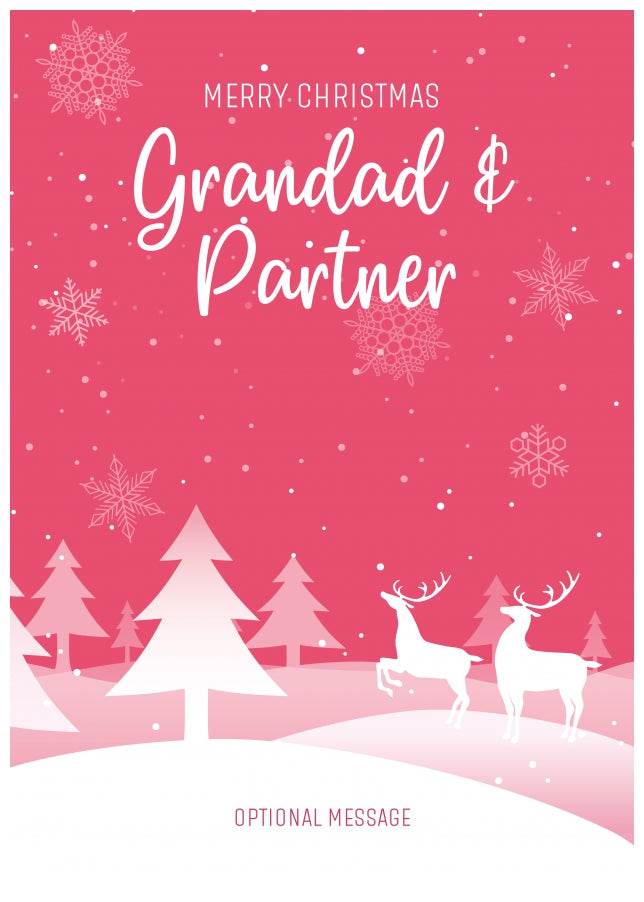 Embrace the holiday spirit and bring joy with this Christmas card for Grandad & Partner displaying a pink winter scene. This isn't just an ordinary card, it's a thoughtful gesture of love, a unique keepsake that they'll cherish.