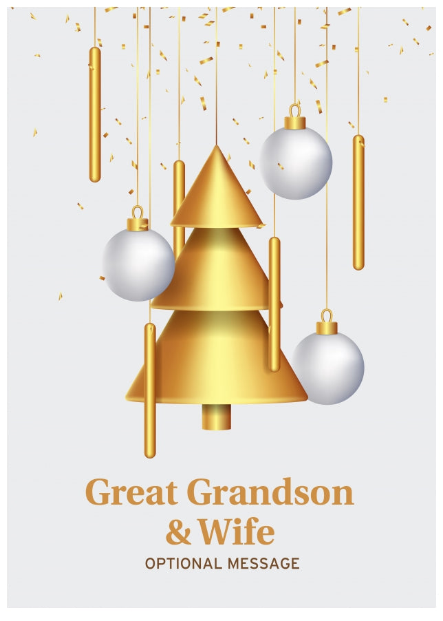 Suitable for almost any age, this card's versatile, humorous tone will resonate with any age. Indeed, our Great Grandson & Wife Christmas Card is a special token of seasonal joy perfect for a great festive season. Ideal for wishing them a very Merry Xmas, this card is also an excellent choice if you're looking for something charmingly humorous that is both traditional and contemporary.