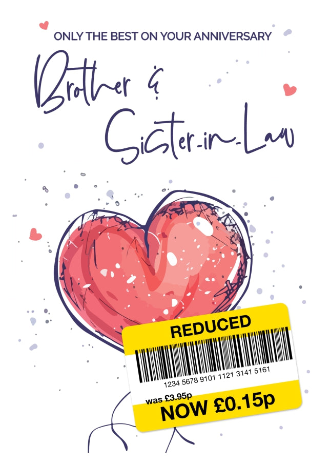 Celebrate their love story with this heartfelt and funny anniversary card for Brother and Sister-in-Law. Whether it’s their 1st year or their 70th, this elegant design with a bold red heart is perfect for marking the journey.