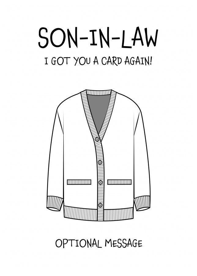 This cute Birthday card for Son-in-law has been designed with a minimal picture of a cardigan on the front and the following wording: