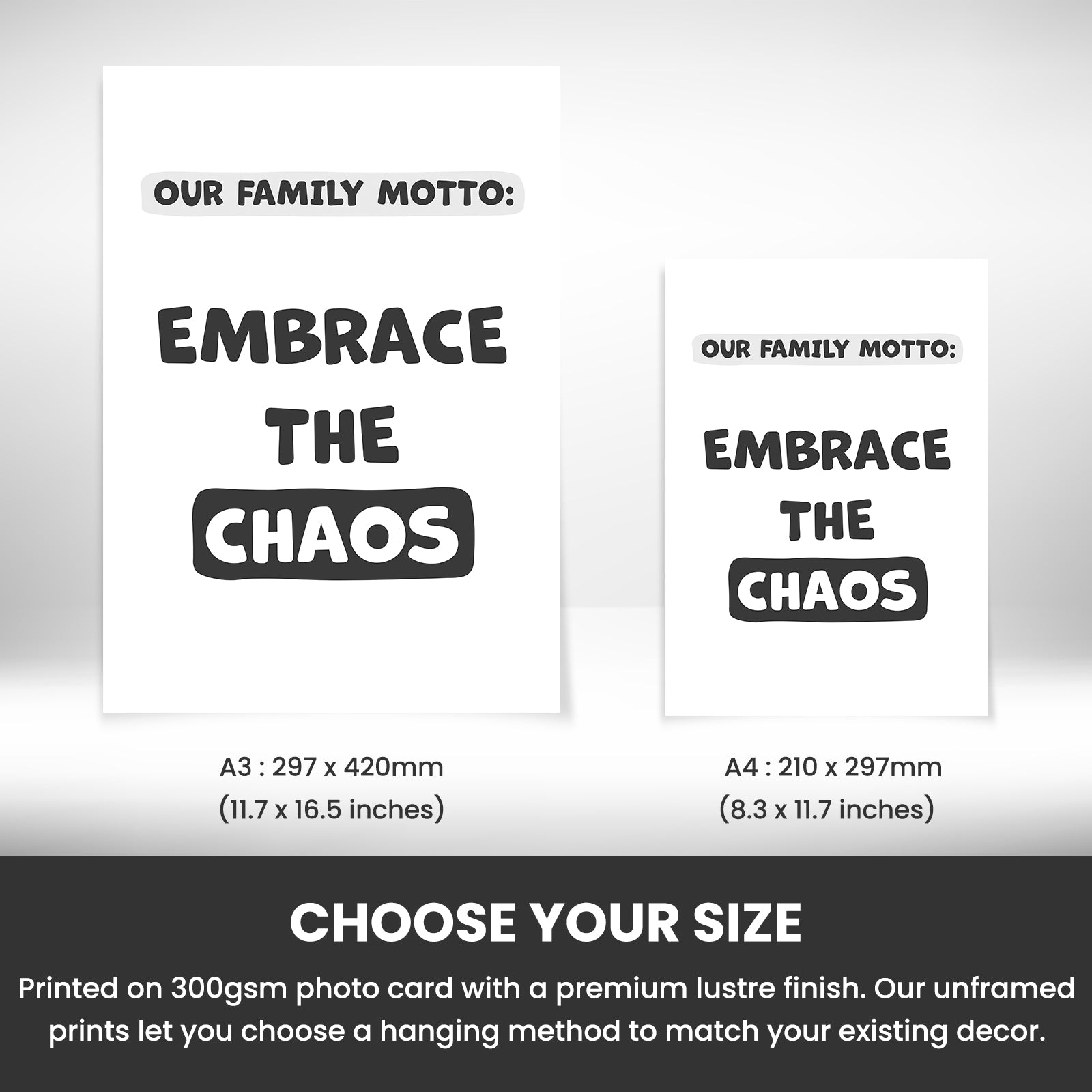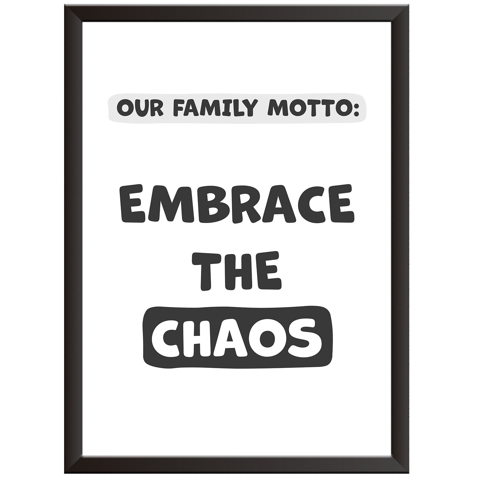 Are you looking to add a bit of humour and personality to your home decor? Look no further than our "Our family motto: Embrace the chaos" wall art!