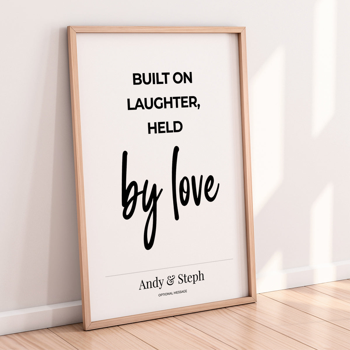 A heartfelt couples affirmation poster celebrating relationships built on shared laughter and held together by love. A meaningful piece of wall art for couples who value connection, warmth, and everyday joy.