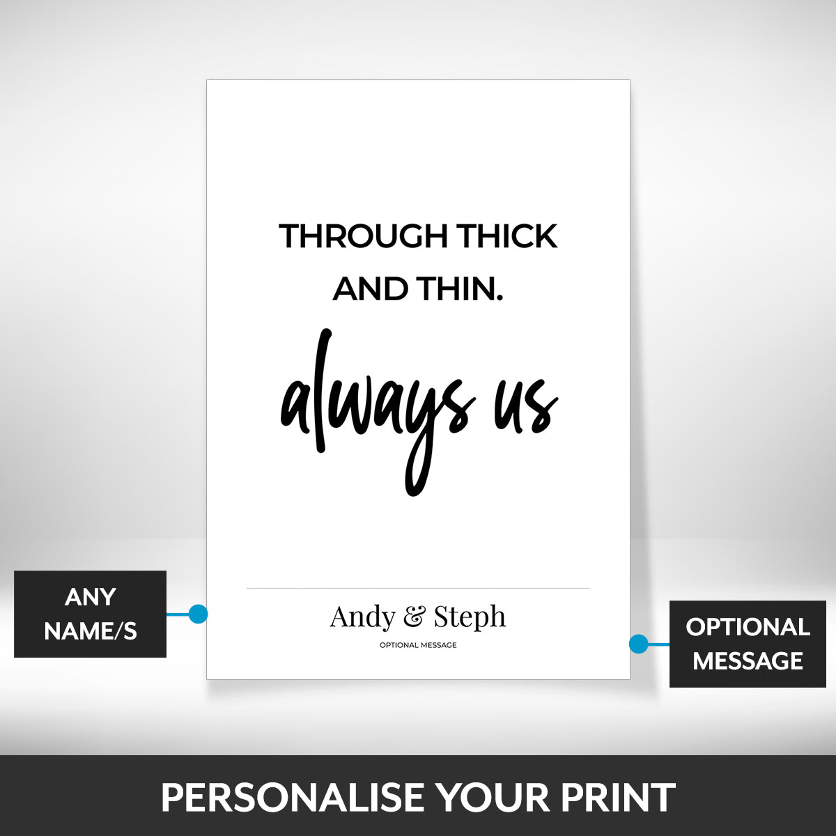 The tone is romantic and heartfelt, with personalisation available for names and an optional message to create a meaningful and lasting keepsake.