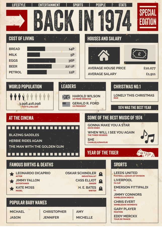 Looking for the perfect gift to celebrate a special 30th birthday? Our 'Back in 1974' card is just what you need!