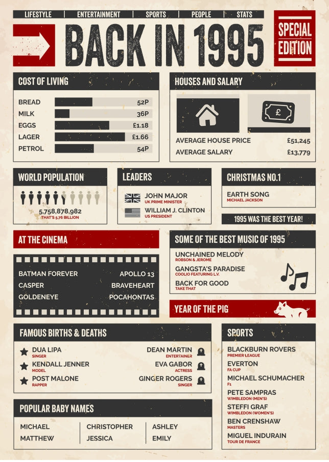 Looking for the perfect gift to celebrate a special 30th birthday? Our 'Back in 1995' card is just what you need!