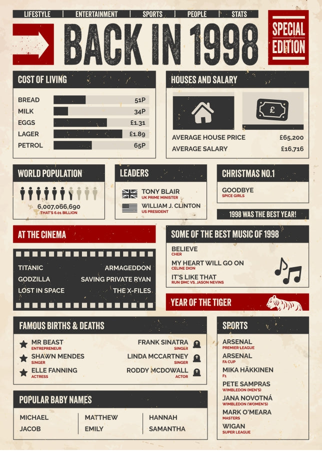 Looking for the perfect gift to celebrate a special 30th birthday? Our 'Back in 1998' card is just what you need!