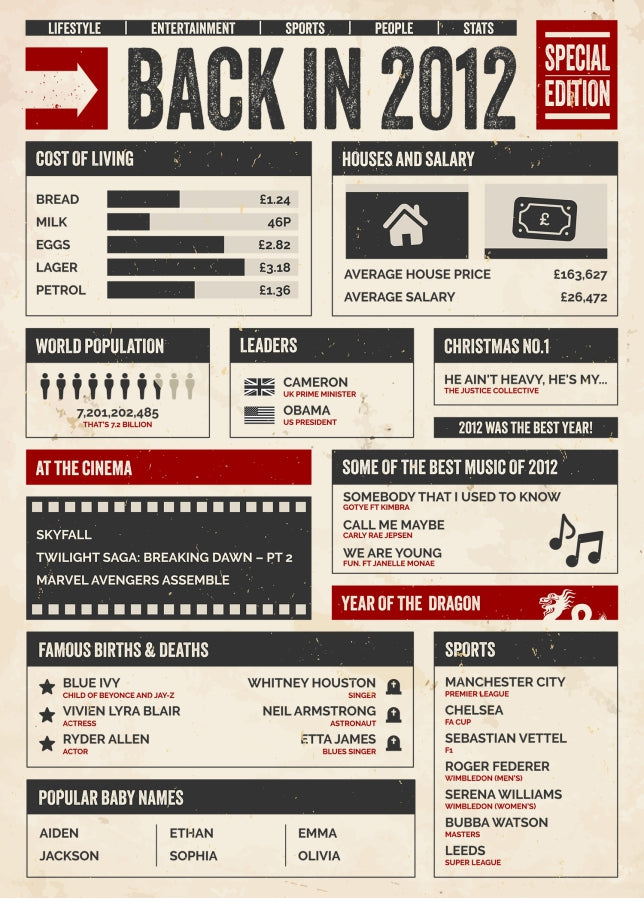 Looking for the perfect gift to celebrate a special 30th birthday? Our 'Back in 2012' card is just what you need!
