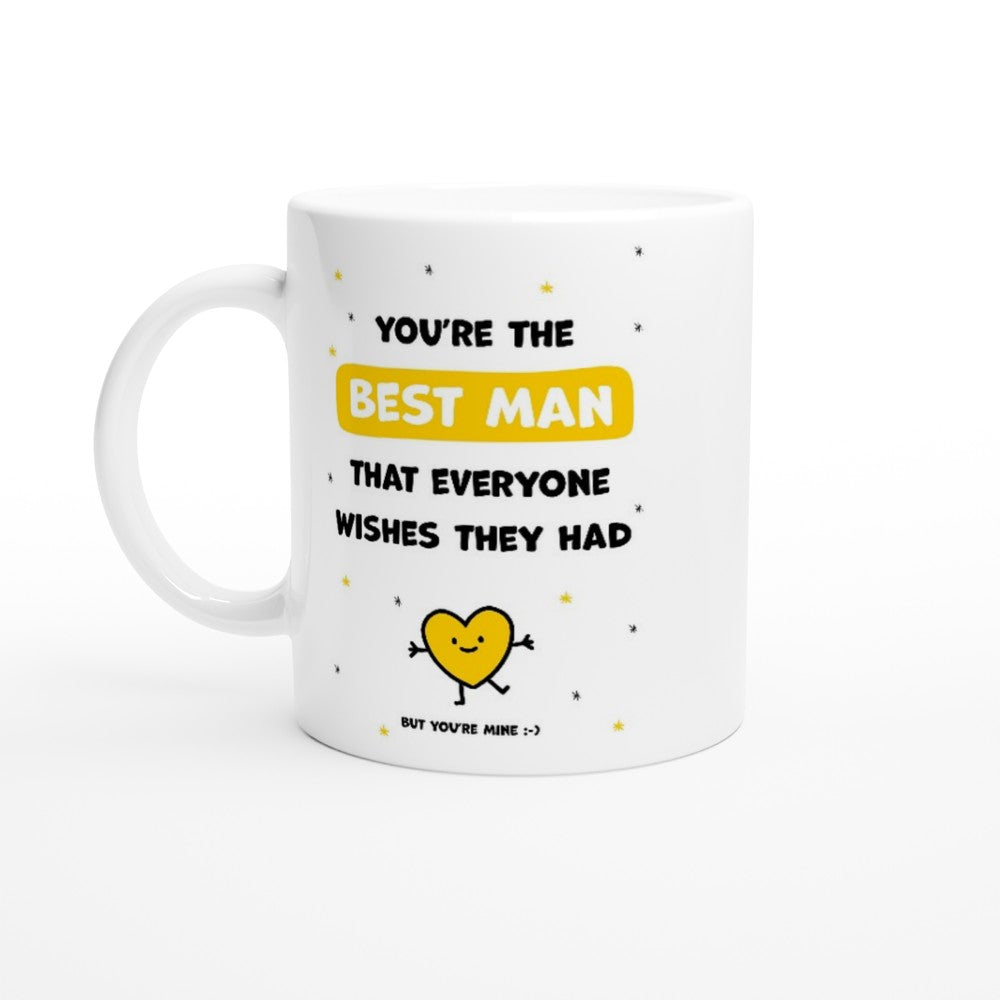 This beautiful ceramic mug for best man is perfect for any event of the day. Your morning coffee, a hot chocolate, or any other hot beverage you enjoy. The mug is glossy white and the prints come out beautifully and vividly on it. The print retains its quality and luster when used in both microwaves and the dishwasher.