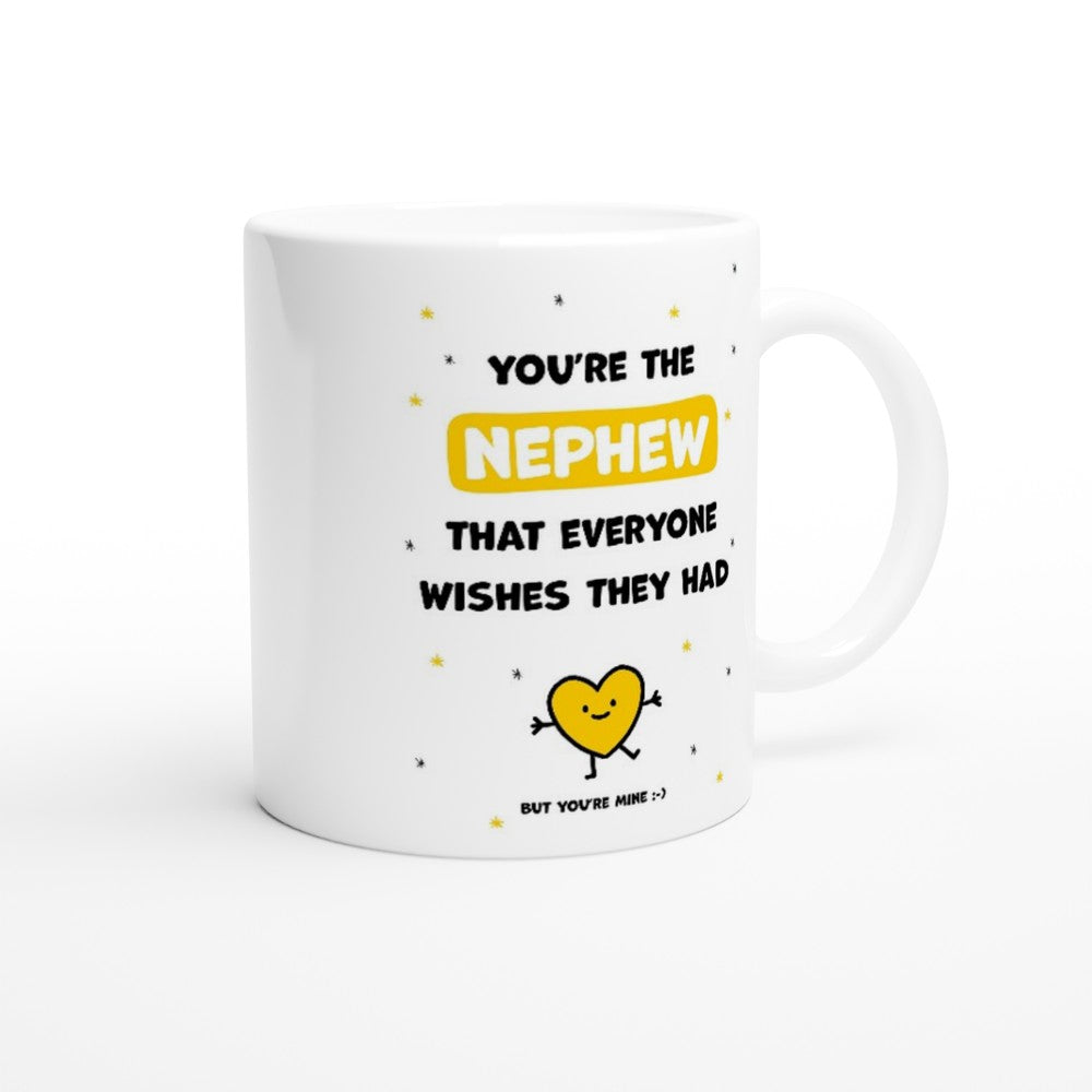 This beautiful ceramic mug for Nephew is perfect for any event of the day. Your morning coffee, a hot chocolate, or any other hot beverage you enjoy. The mug is glossy white and the prints come out beautifully and vividly on it. The print retains its quality and luster when used in both microwaves and the dishwasher.