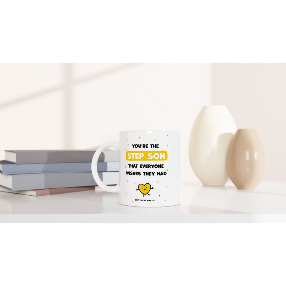 This beautiful ceramic mug for Step Son is perfect for any event of the day. Your morning coffee, a hot chocolate, or any other hot beverage you enjoy. The mug is glossy white and the prints come out beautifully and vividly on it. The print retains its quality and luster when used in both microwaves and the dishwasher.
