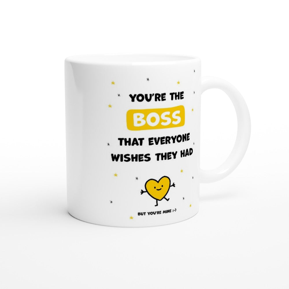 This beautiful ceramic mug for boss is perfect for any event of the day. Your morning coffee, a hot chocolate, or any other hot beverage you enjoy. The mug is glossy white and the prints come out beautifully and vividly on it. The print retains its quality and luster when used in both microwaves and the dishwasher.