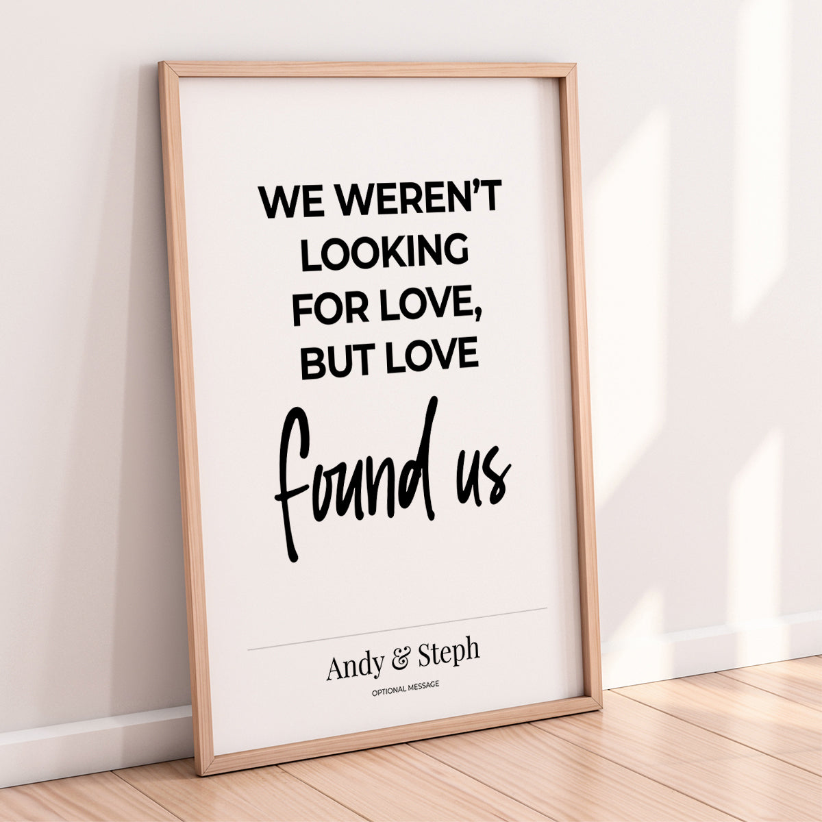 A sentimental couples affirmation print celebrating unexpected love and meaningful connections. Designed for couples who found each other naturally, it makes a thoughtful gift for anniversaries, weddings, or new homes.