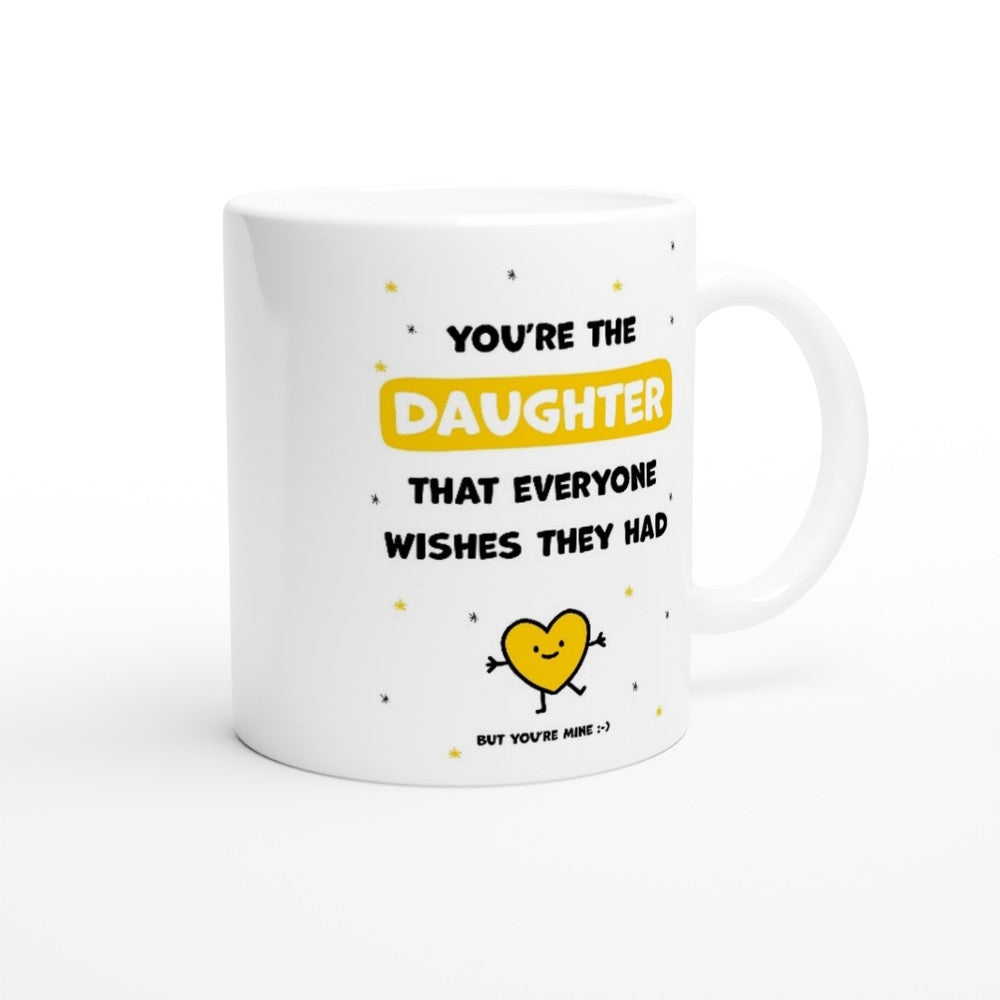 This beautiful ceramic mug for daughter is perfect for any event of the day. Your morning coffee, a hot chocolate, or any other hot beverage you enjoy. The mug is glossy white and the prints come out beautifully and vividly on it. The print retains its quality and luster when used in both microwaves and the dishwasher.
