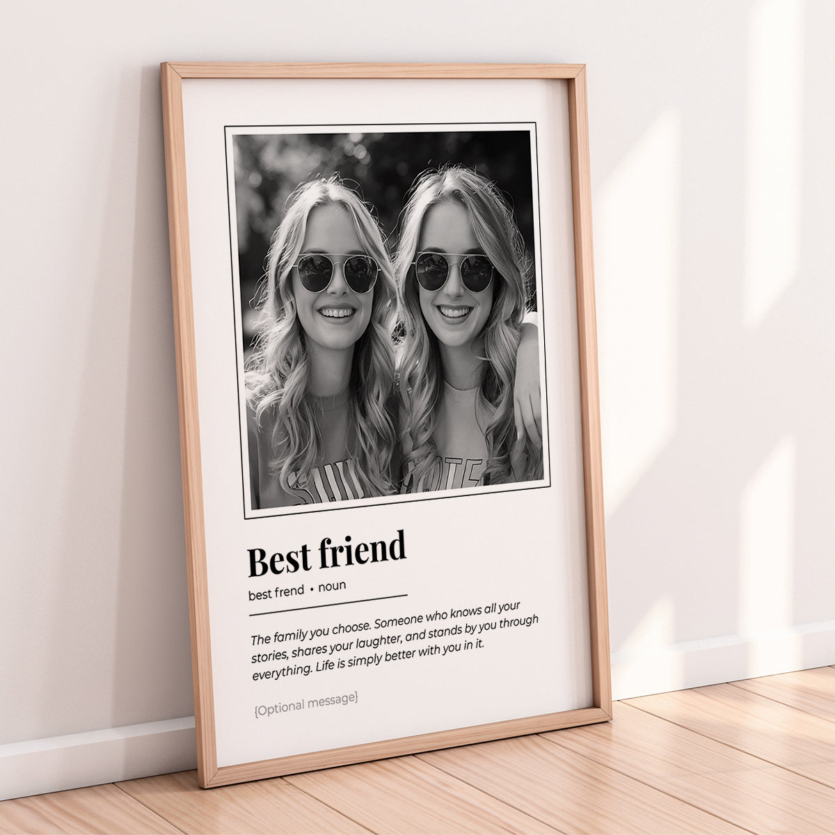 This personalised definition-style wall art is a thoughtful way to celebrate a best friend who means the world to you. Designed to look like a modern dictionary entry, it combines heartfelt sentiment with clean, stylish typography.