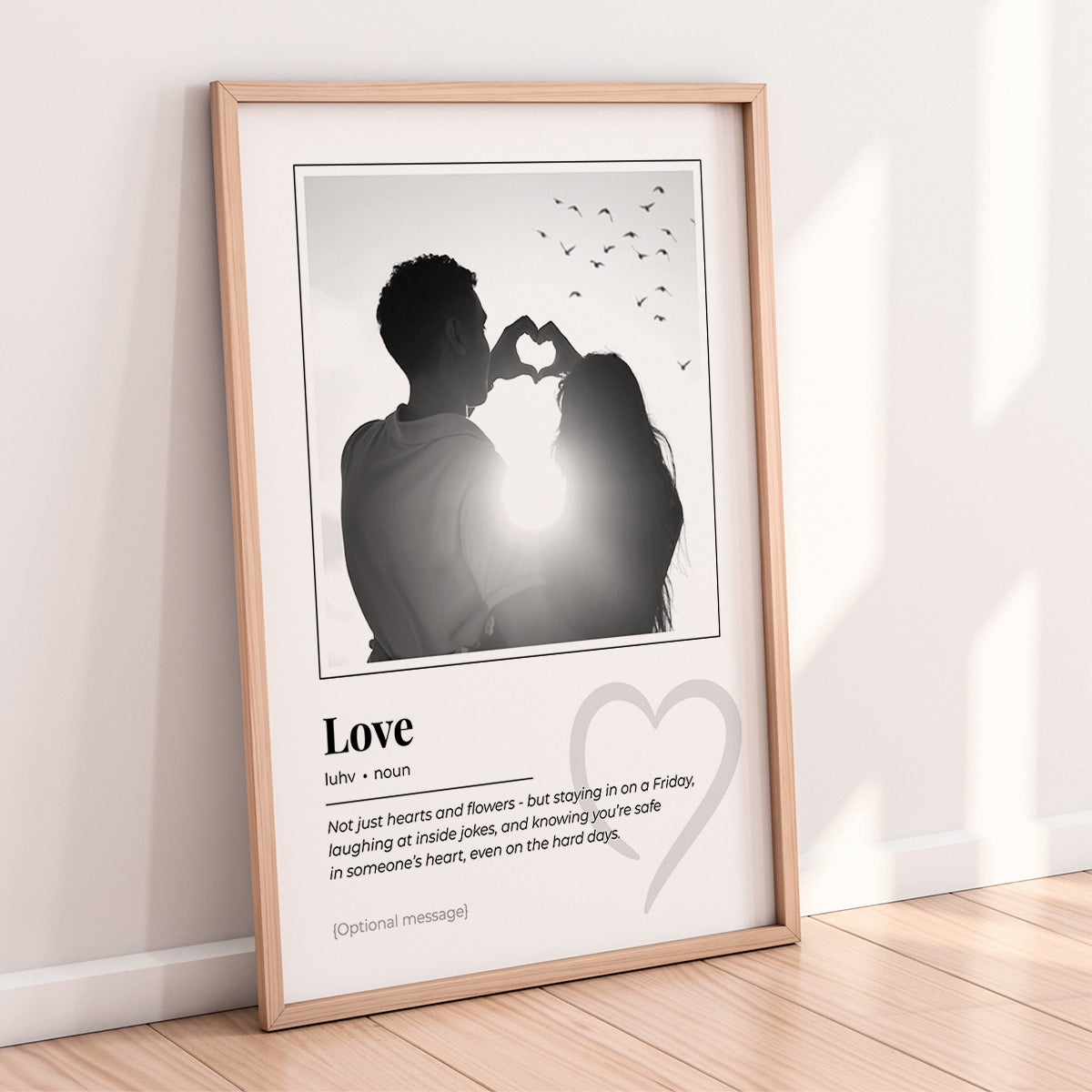 A heartfelt dictionary-style wall art print celebrating love in its real, everyday form.