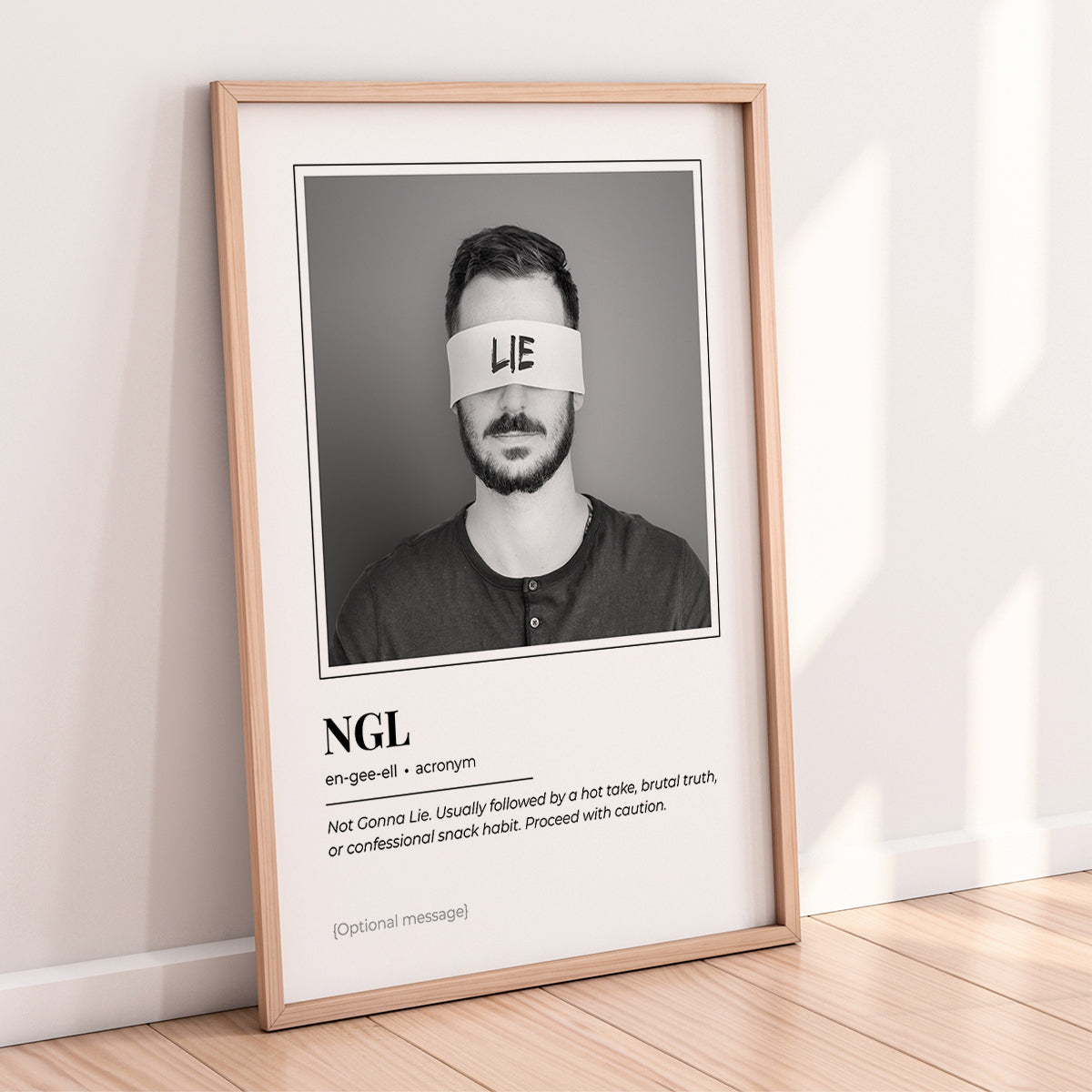 A funny dictionary-style wall art print based on the acronym "NGL", capturing those brutally honest moments everyone recognises.