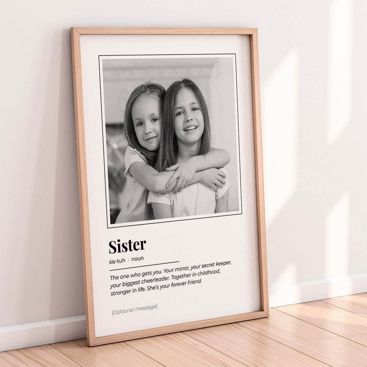 This personalised dictionary-style wall art print for your sister is a heartfelt way to celebrate the bond you share. Designed to capture closeness, loyalty, and lifelong friendship, it blends emotion with a clean, modern layout.