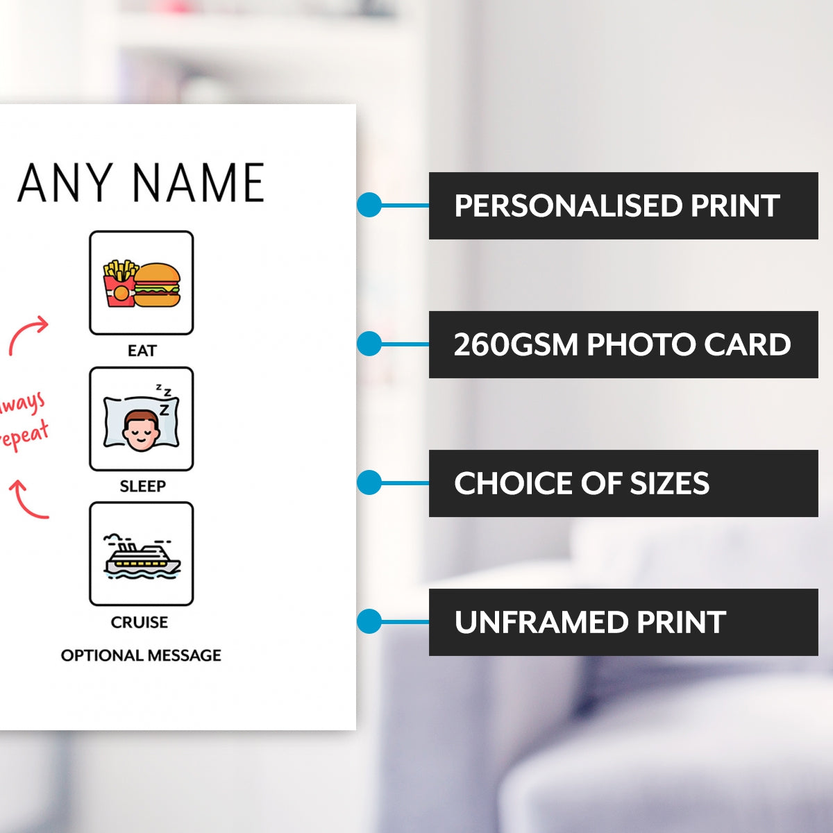 This fun cruise poster will look amazing hung in a boys bedroom, girls room or as a boys bedroom accessory. This can be given as a gift to your son / daughter / brother / sister or even to a cruise lover.