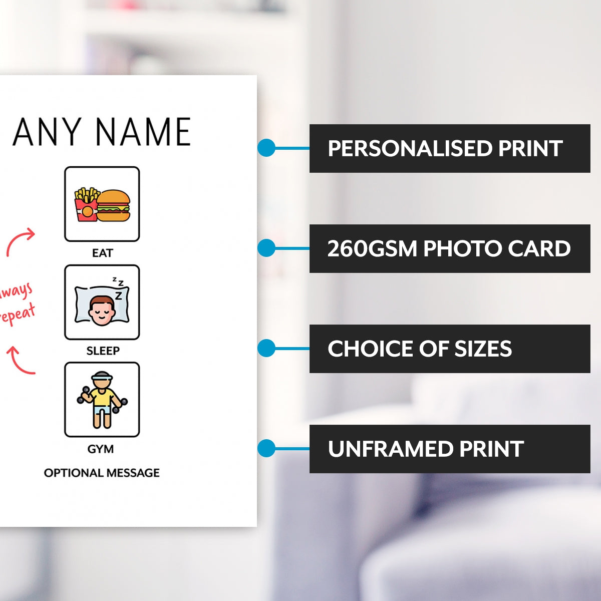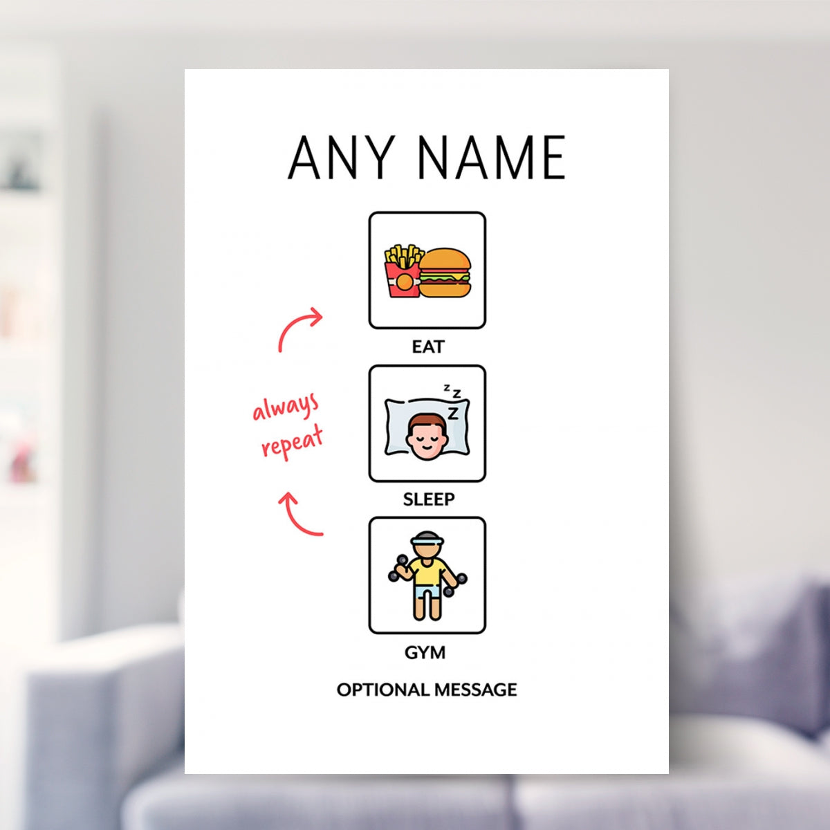 This fun gym poster will look amazing hung in a boys bedroom, girls room or as a boys bedroom accessory. This can be given as a gift to your son / daughter / brother / sister or even to a fitness addict.