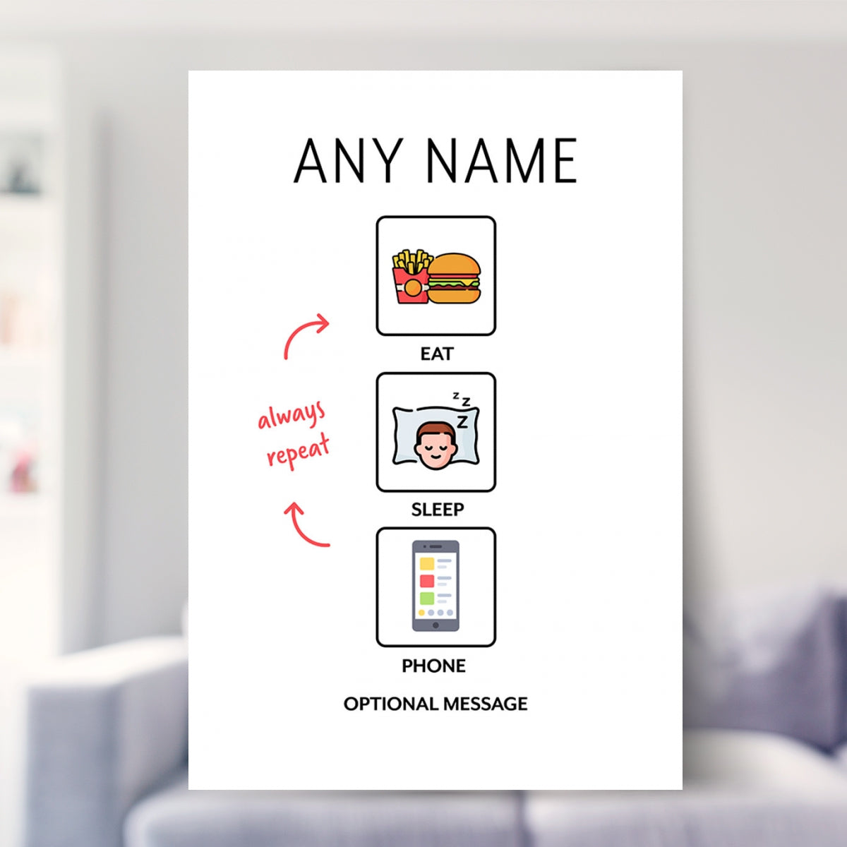 This fun phone poster will look amazing hung in a boys bedroom, girls room or as a boys bedroom accessory. This can be given as a gift to your son / daughter / brother / sister or even to a phone addict.