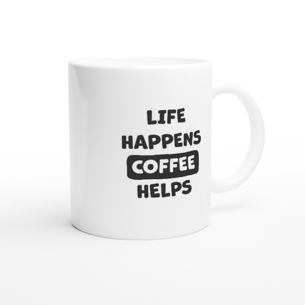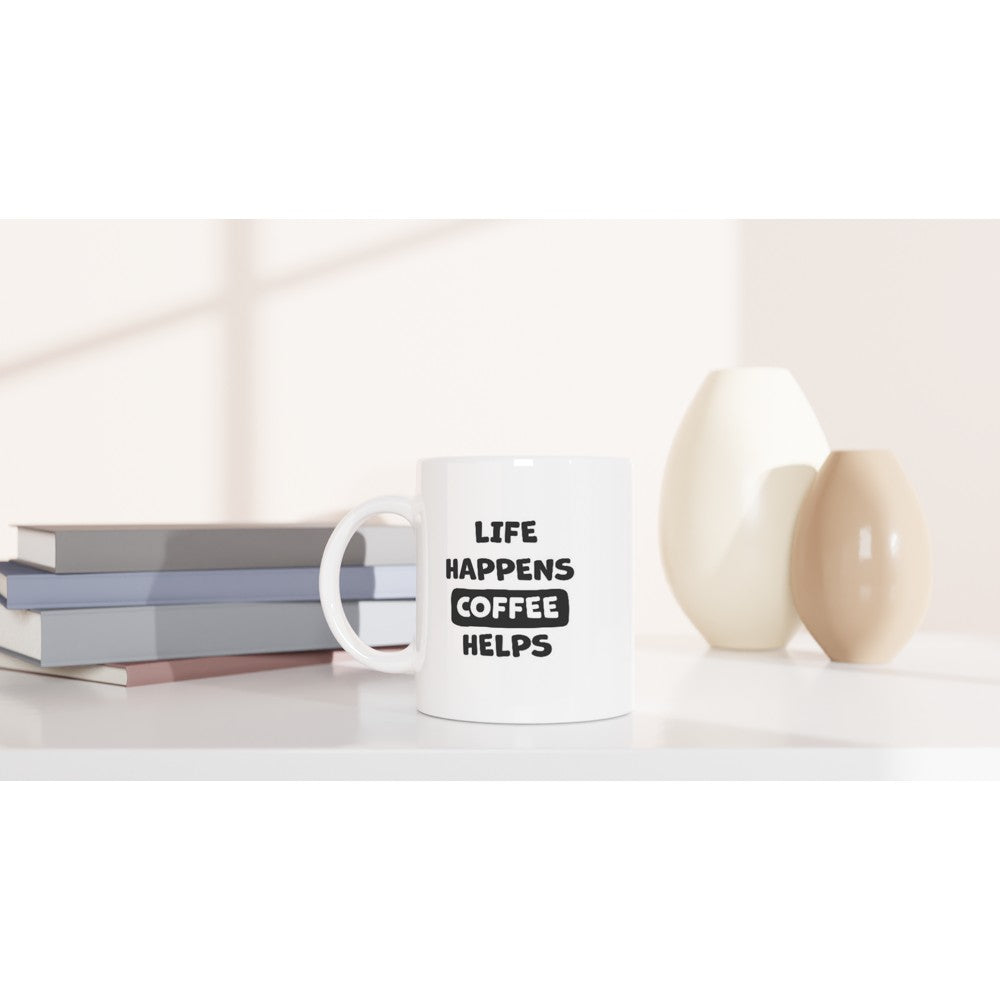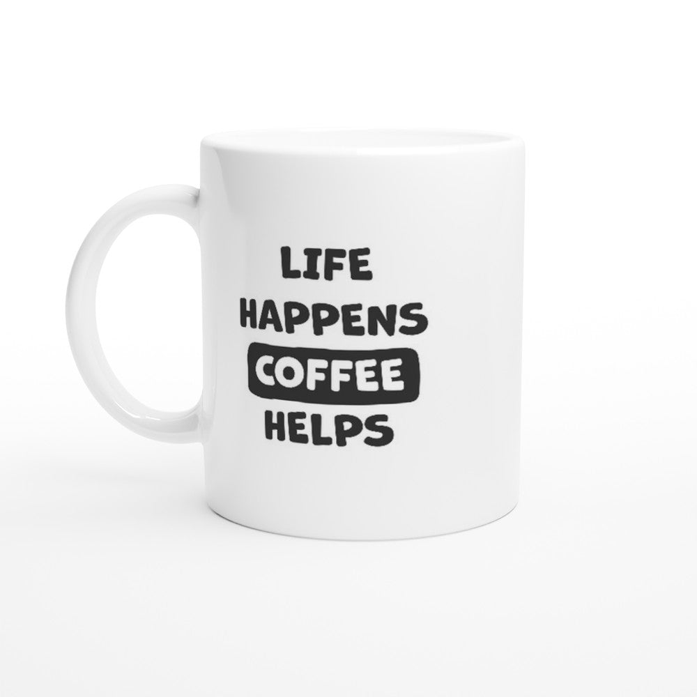 Give the special people in your life a reason to smile with the "Life Happens Coffee Helps!" coffee mug—a perfect blend of humour and practicality. This glossy white ceramic mug is more than just a container; it's a thoughtful gift that sparks laughter and joy every morning.