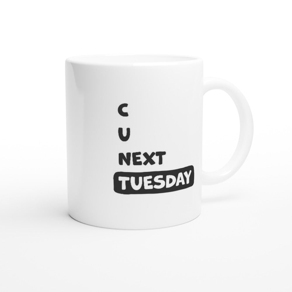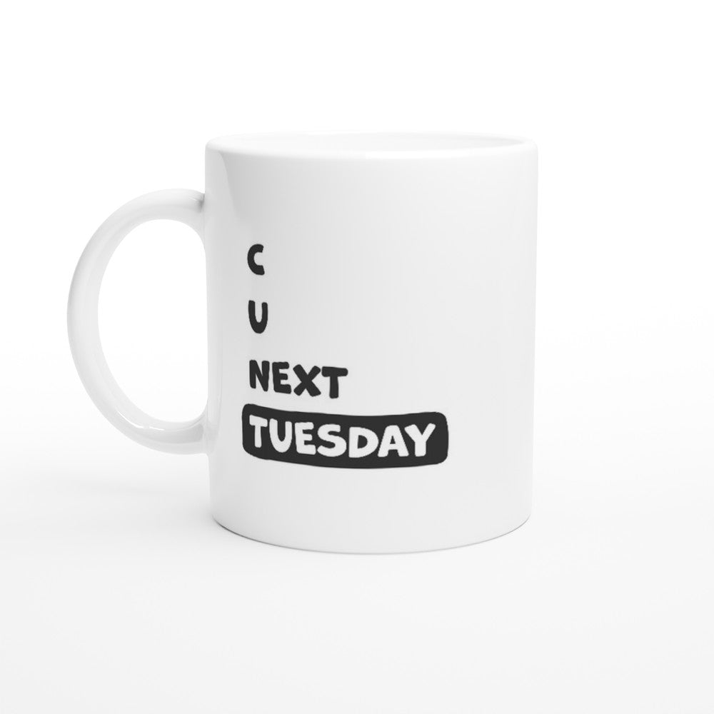 Give the special people in your life a reason to smile with the "See You Next Tuesday!" coffee mug—a perfect blend of humour and practicality. This glossy white ceramic mug is more than just a container; it's a thoughtful gift that sparks laughter and joy every morning.